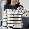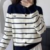 Retro Color-blocked Striped Round-neck Knitted Cardigan Women's Short Coat Sweater Spring and Autumn New Design Niche Top