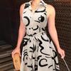 Summer New Arrival Fashion Wind Fashion Commuter Print Single-Breasted Lace up Elegance Sleeveless Shirt Dress Dress