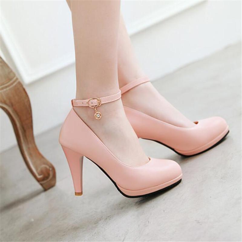 High Quality White Wedding Shoes Women Pumps High Heels Shoes With Ankle Strap Shallow Ladies Office Party Dress Shoes 31-46