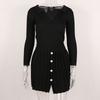 European and American Sexy Pleated Autumn Silm Long Sleeves Open Collar T-shirt Skirt Knitted Two-Piece Knitted Suit