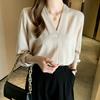 Fashion Style Spring and Autumn Work Clothing Ol Business Wear V-neck Slimming Pure Color All-Matching Fashion Long Sleeve Shirt Top Women