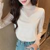 K-style Fashion Commuter Ol Stand Collar & White Sneaky Design See-through Slim-Fit Easiest for Match Long Sleeves T-shirt Lace Bottoming Shirt Spring