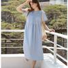South Korea Dongdaemun Plus Size Women's round Neck Light Blue Sweet Leisure Mid Length Long Length Short Sleeve Dress Trendy L-4XL