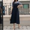 Dongdaemun Plus Size Women's Clothing Chubby Girl round Neck Stripes Short Sleeve Stitching Short Sleeve Mid Length Long Length Waist Tight Dress Tide