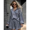 2025 Amazon European and American Summer Casual Women Loose Long sleeve Zip-up Cardigan Outerwear Lace Wide Leg Short Pants Suit