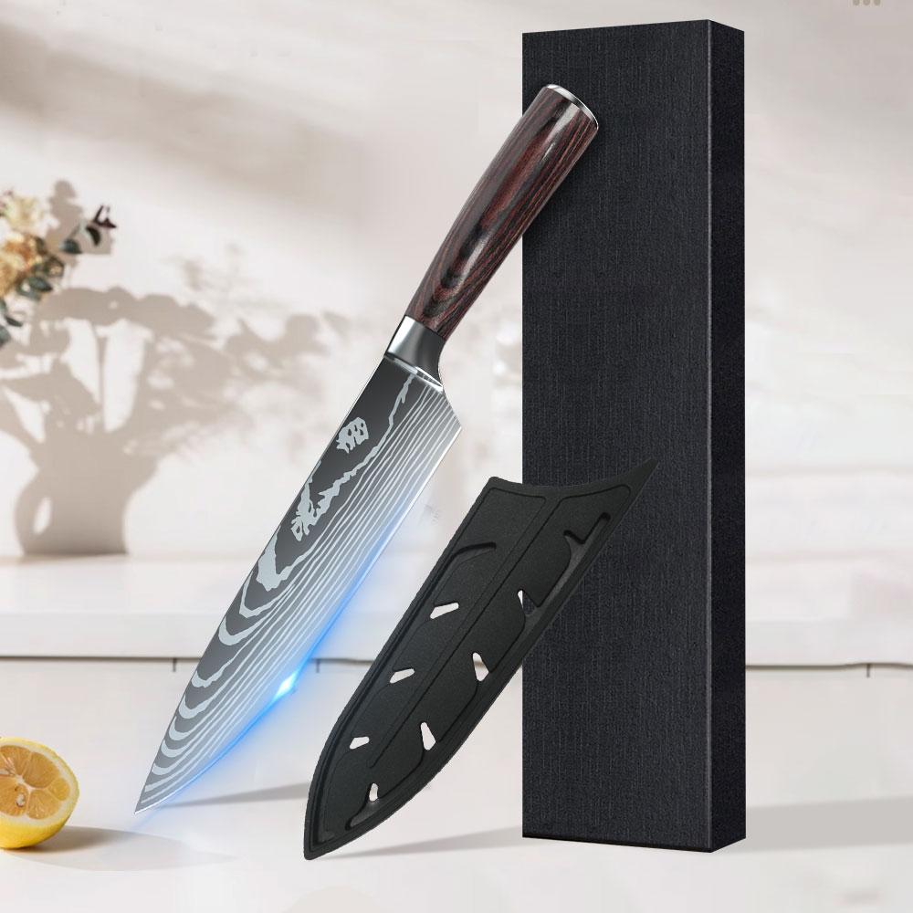 8inch Super Sharp Chef knife with Cover Japanese Damascus Pattern Stainless Steel Kitchen Chopping Knife Professional Kitchen K
