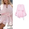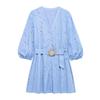 Spring New V Neck Puffy Long Sleeves with Belt Adhesive Embroider Decorative Poplin Dress 2492058