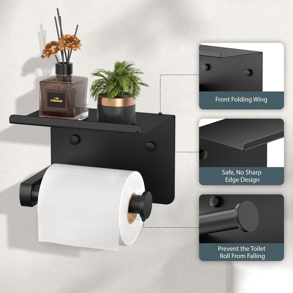 Adhesive Toilet Paper Holder Stainless Steel With Storage Shelf Toilet Paper Towel Holder Wall-mount Bathroom Storage Organizer
