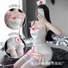 Sexy lingerie one-piece sexy nurse suspender perspective hollowed out red and white lace uniform seduction