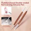 1Pc Wood Handle Double Head Nail Mixing Gel Pen, Silicone Nail Carving Pen, Soft Rubber Tip for Powder Application