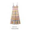 Kaslead New Women clothes Western Style Fashion Patchwork Lace Contrast Color Stripe V-neck Sling Dress