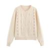 Kaslead New Arrival Women's Clothing Fashion Style Three-Dimensional Flower Contrast Color Hook Cable Stitch round Neck Knitting Cardigan Outwear