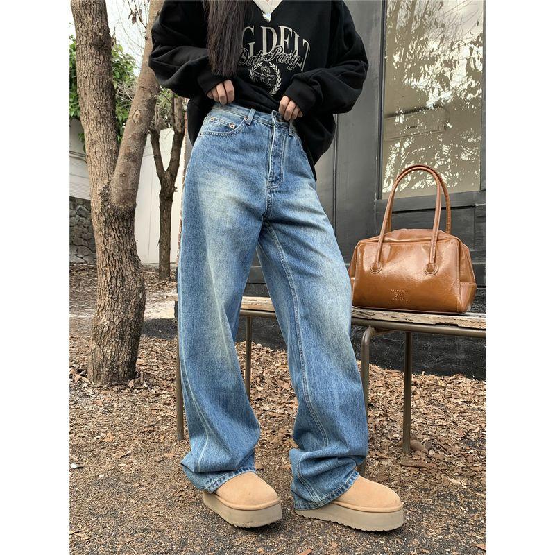 Kumikumi American Retro Washed Wide-Leg Jeans Women's Clothing Fall Loose Slimming and All-Matching Straight-Leg Pants Pants