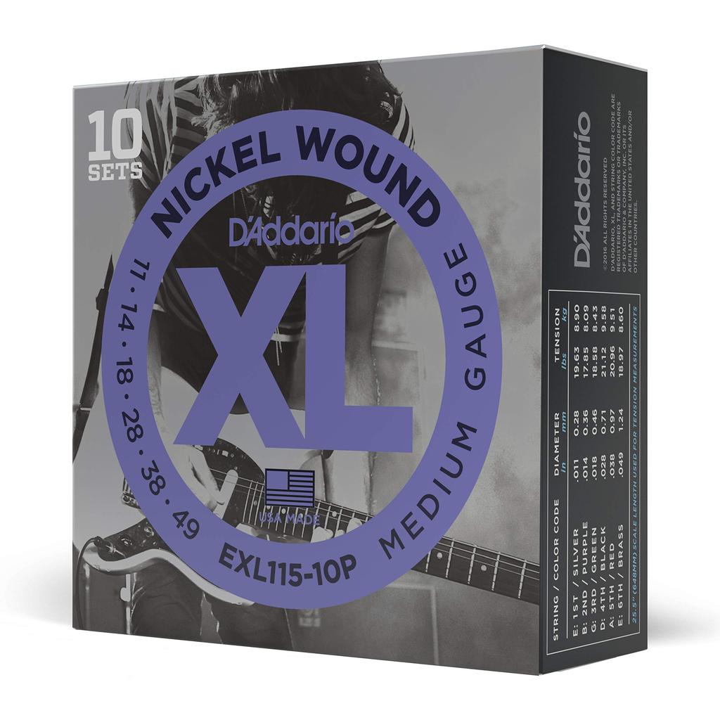 Electric Guitar XL D'Addario Strings, Nickel, .011-.049, Blues/Jazz Rock, 10-pack, EXL115-10P