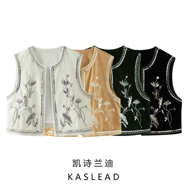 Kaslead New Arrival Women's Fashion Style Fashion Minimalist Velvet Beads Decoration Embroider Vest 5770226
