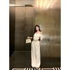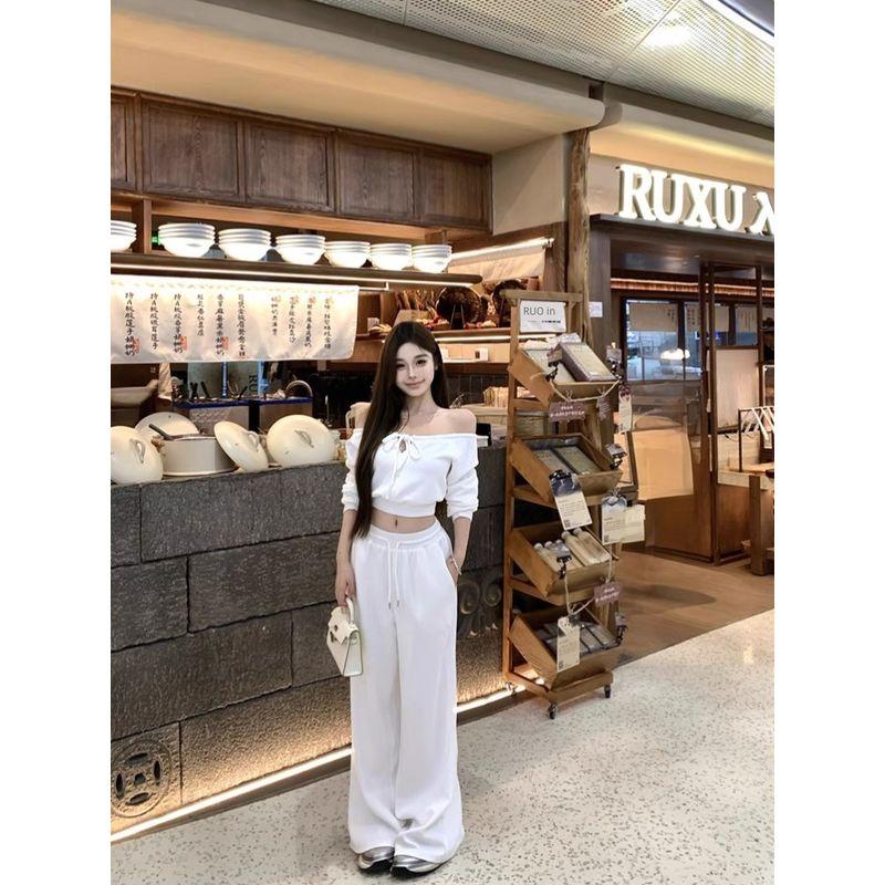 Kumikumi Elegant Outfit Short off-Shoulder Long Sleeves Sweatshirt Female Fall High Waist Drawstring Loose Pants Two-piece Set