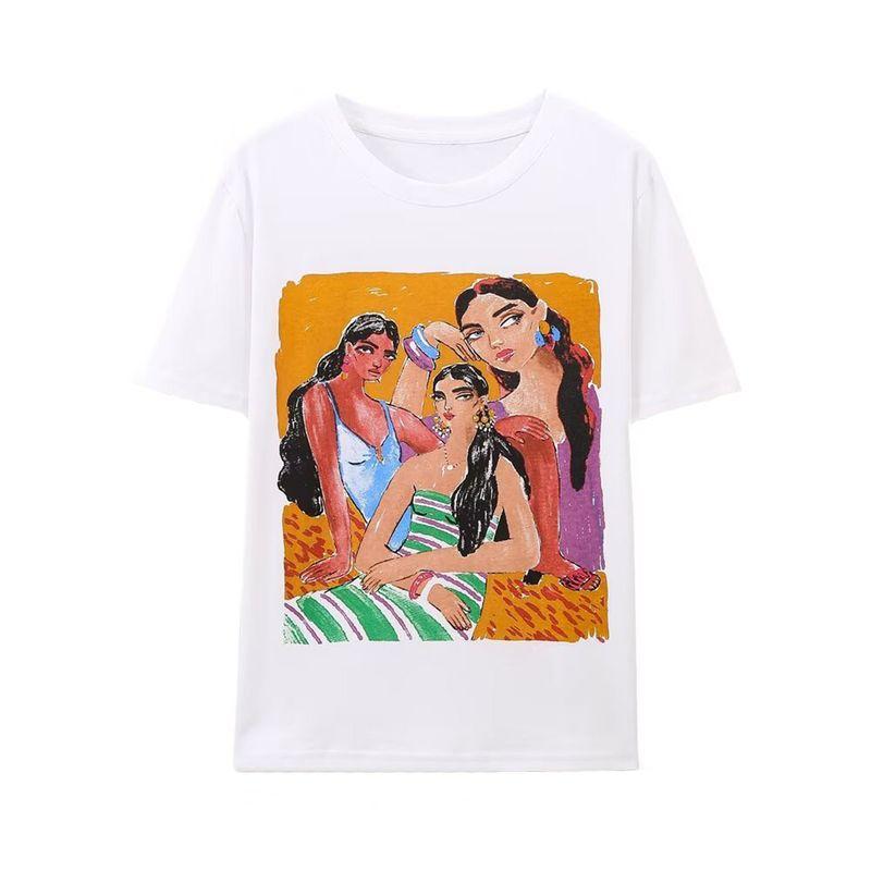 Kaslead New Arrival Women's Fashion Style Stylish Simple and Versatile Casual Girl Print T-shirt 5644825