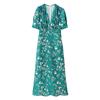 Autumn New Product Women clothes French style Pastoral Style Pleated Decoration V-neck Bubble Short sleeve Long Print Dress