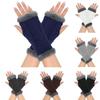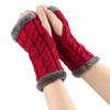 Solid Color Knitting Fingerless Plush Gloves Arm Warmers Thicked Gloves Autumn Winter Mittens For Adult