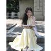 Kumikumi Gentle Wind Set Pleat Hanging Neck Cami Women Summer Drape High Waist Skirt Two-piece Set