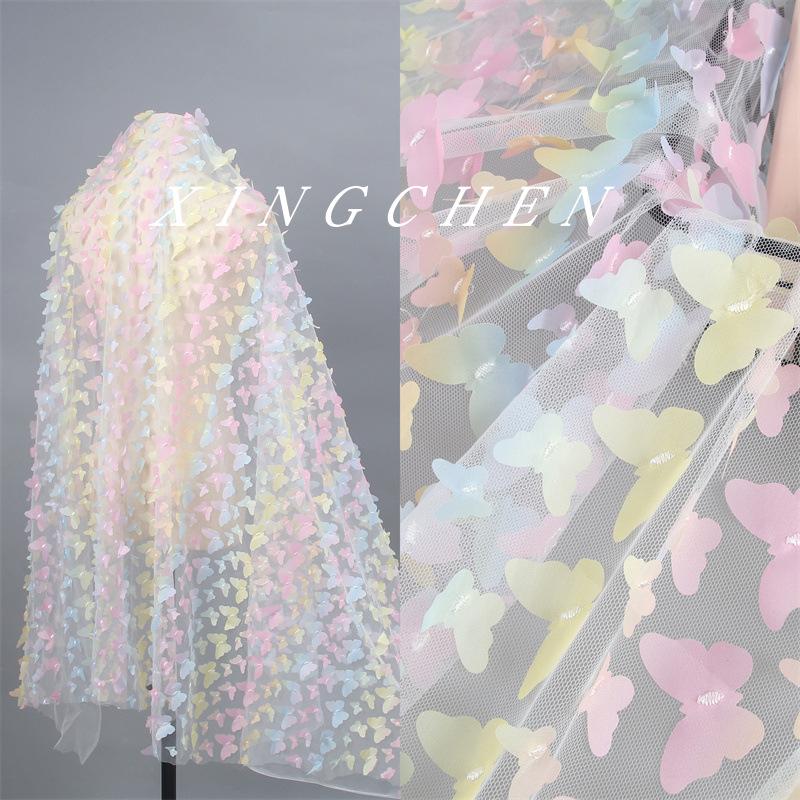 Color Three-Dimensional Gradual Change Butterfly Laser Embroidery Lace Fabric Women'S Dress Skirt Children'S Colorful Clothing Fabric