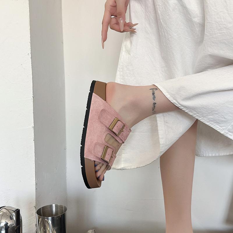 Boken slippers sandals 2025 summer new flat-bottomed thick-soled comfortable and breathable outer wear casual soft-soled beach slippers