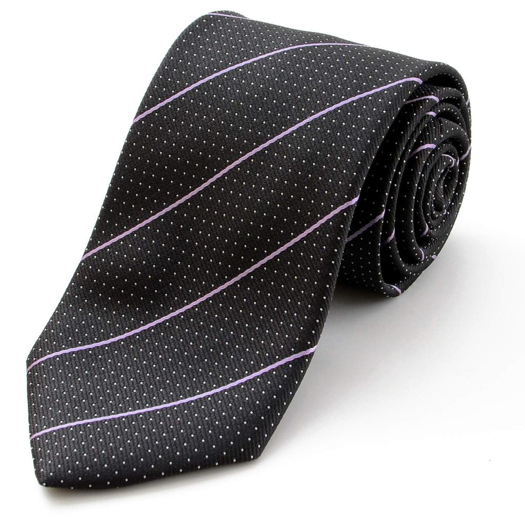 MICHIKO LONDON Brand Made in Silk Jacquard Woven Stripe and Pin Dot Pattern Charcoal Necktie, Japan, (Pattern C Gray)