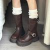 Popular retro thick-soled belt buckle one-pedal Martin boots for women's 2025 autumn new versatile height-increasing and thin short boots