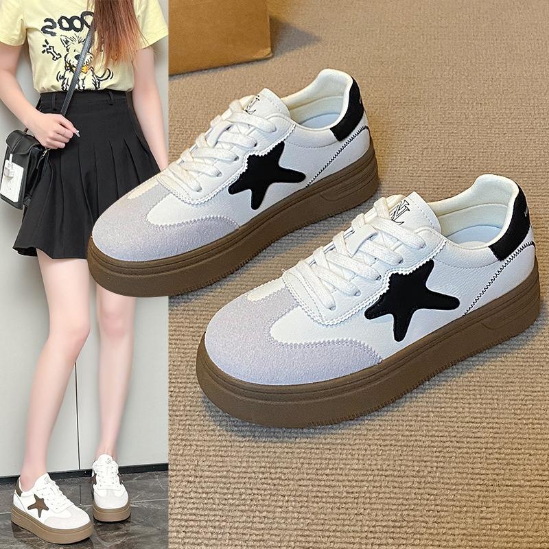 New soft leather women's shoes round head lace-up thick sole fashionable versatile color matching board shoes tide
