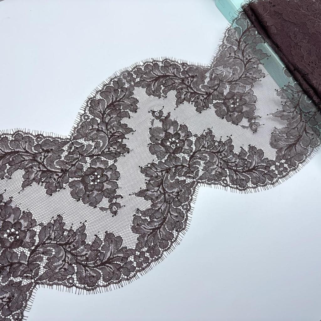Dantelă Chantilly Franceză Maro Închis 3m x 22cm, Dantelă cu Gene din Nailon Inelastic pentru Cusut, Sutien, Lenjerie Intimă, Rochie, Articol de Îmbrăcăminte, Artizanat