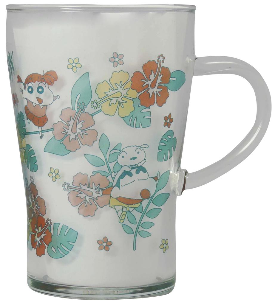 Crayon Glass 8 x Exciting Made in Shin-chan Heat-Resistant Mug, 350ml, Diameter Approx. 12cm, Adventure, Merchandise, Tableware, Japan, Flower, Pink,