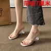 Pantofi cu toc înalt pentru femei îmbrăcăminte exterioară 2025 vară nouă modă vârf rotund toc gros papuci de cristal sandale de damă femei