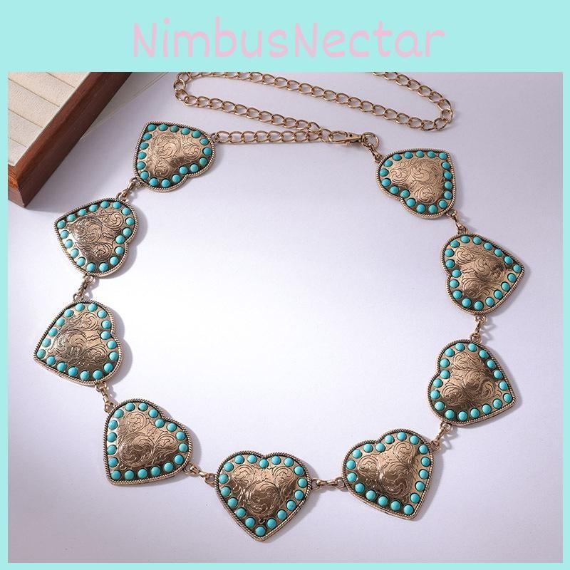 Heart Fashion Turquoise Waist Chain For Women With Metal Material And Design Elegant