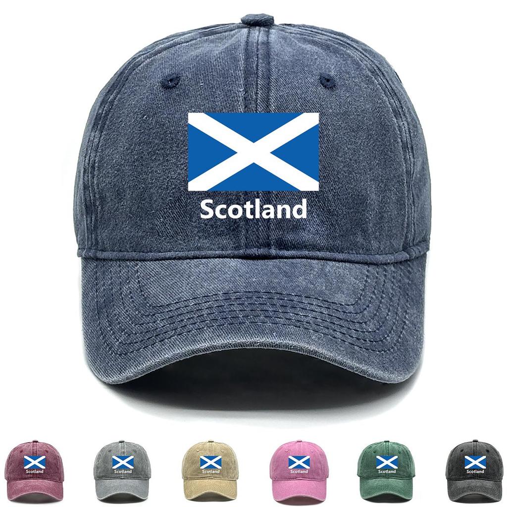 Flag of Scotland Print Adjustable Sun Hat, Patriotic Trucker Hat Non-Stretch Fabric Leisure Slouchy Unisex Snapback Baseball Hat
