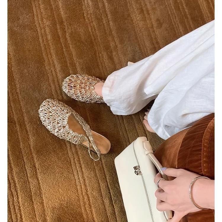 Grape mother same style round head hollow woven mesh flat bottom Roman shoes sandals casual versatile bag head empty sandals