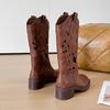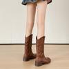 Embroidery v-mouth thick-soled thick-heeled western cowboy boots women's 2025 new retro square head hollow Martin boots medium boots