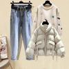 Autumn and Winter Clothes, Small Three-piece Cotton Jacket, Simple Sweater, Loose Harlan Daddy Jeans Suit