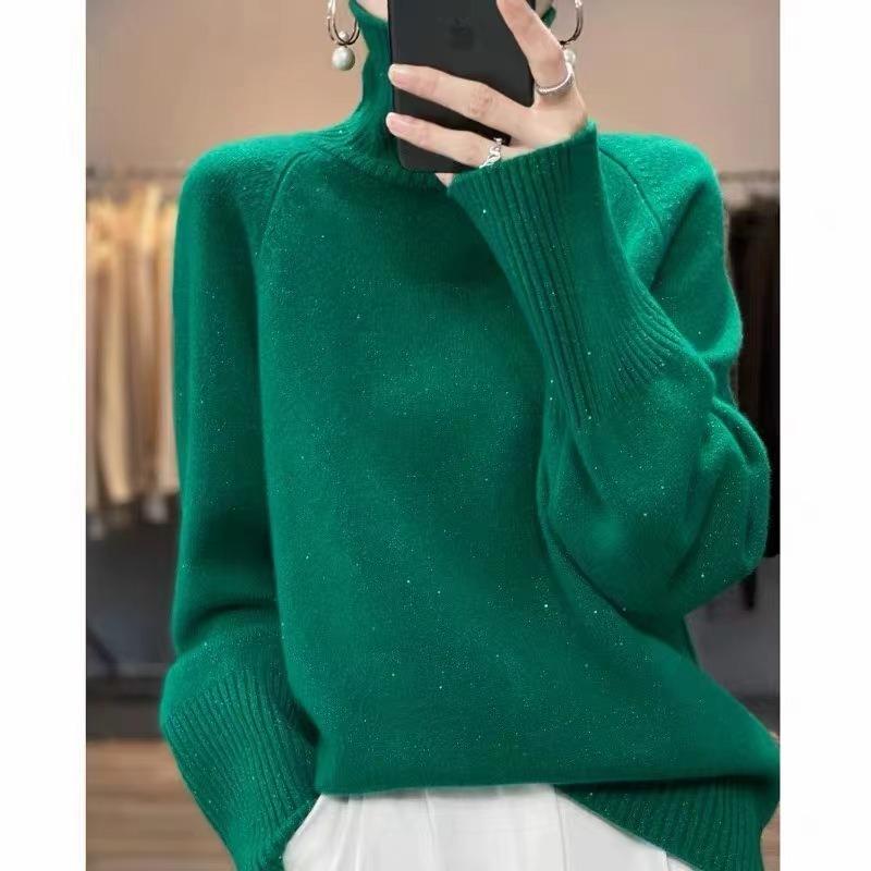 Loose sequined turtleneck thickened casual solid color sweater women's winter new base two lapel knitting