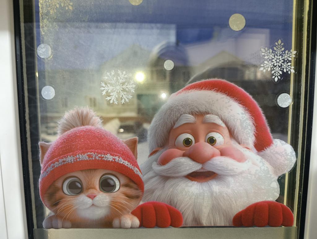 Utilizare versatilă: Ideali pentru decorațiuni de casă și de sărbători, acești autocolanți cu modele de pisoi și Moș Crăciun sunt perfecți pentru a crea o ambianță primitoare și confortabilă pentru adunările cu familia și prietenii.