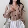 Short twist knitted sweater women's coat autumn new design sense knitted solid color long-sleeved cardigan women