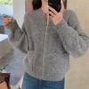 Lazy wind zipper sweater cardigan women's spring and autumn new design loose knitted jacket top