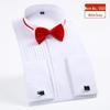 British Style Bow Tie Ceremonial Wedding Evening Dress Shirt with French Cuffs - Autumn Business Wear Top