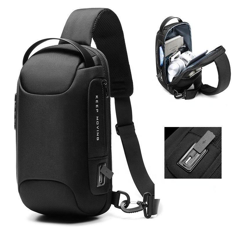 Men's Waterproof Functional Chest Bag, Customizable Logo, Casual Business Crossbody Shoulder Bag