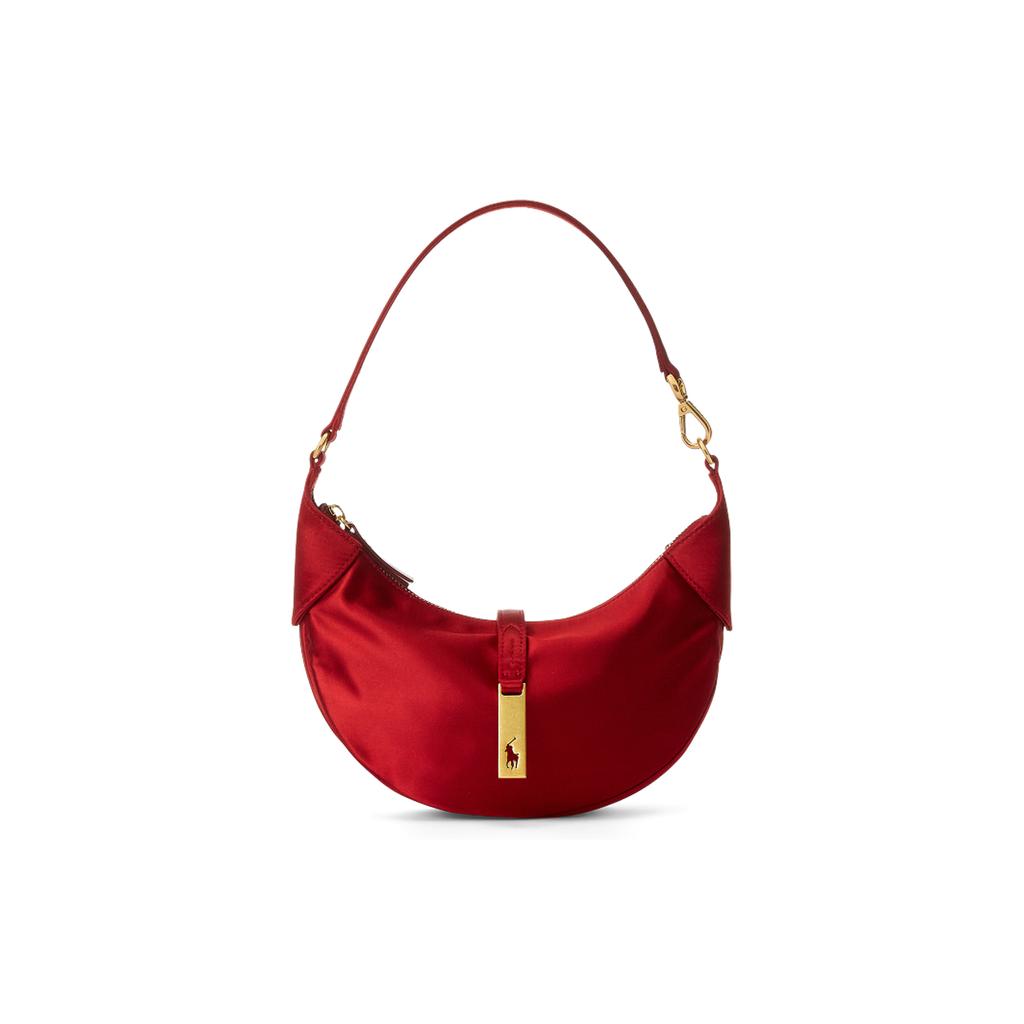 New Polo Ralph Lauren Polo ID Satin Fabric With Cow Leather Trim Handheld Handbag, Shoulder Bag Women's Red WAPOBAG02V20023