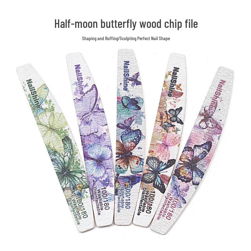 Crescent Butterfly Multi-color Ultra-thin Nail Sanding File - Double-sided Shaping Strip for Salon