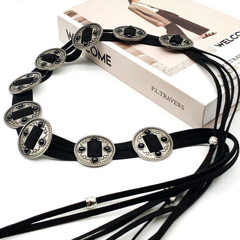 Vintage Minority Style Inlaid Waist Chain, Indian Tribal Merry Sioux Belt, Belt Bohemian Black Rope