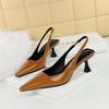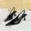 Fashion Sexy Pointed Toe Patent Leather Women Pumps Street Style Slingback Thin High Heels Shallow Ladies Sandals Retro Shoes Women