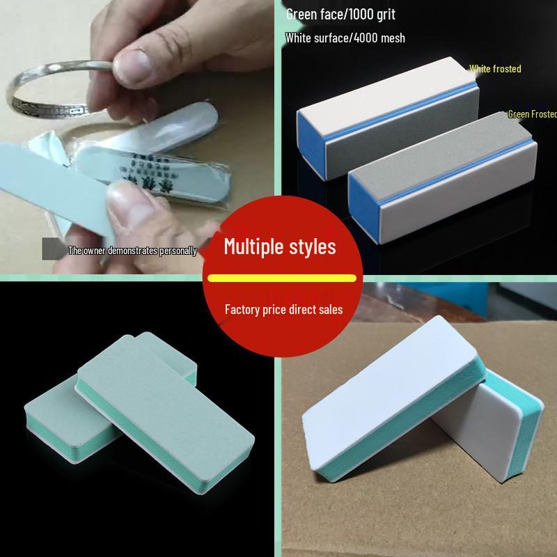 Pilă de Unghii Verde & Albă cu Două Fețe, Bloc de Lustruit - Pilă Argintie pentru Instrumente de Manichiură