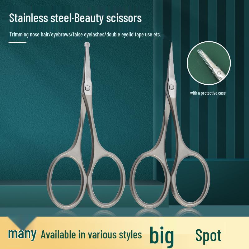 Semi-Sandblasted Beauty Trimming Scissors Set: Eyebrow, Nose Hair, Pointed & Rounded Scissors for Makeup and Household Use.
