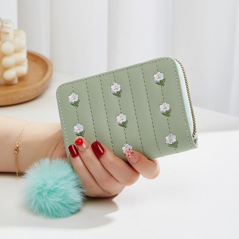 New short wallet women's single zipper embroidered wallet fresh and sweet fashion clutch bag women's one